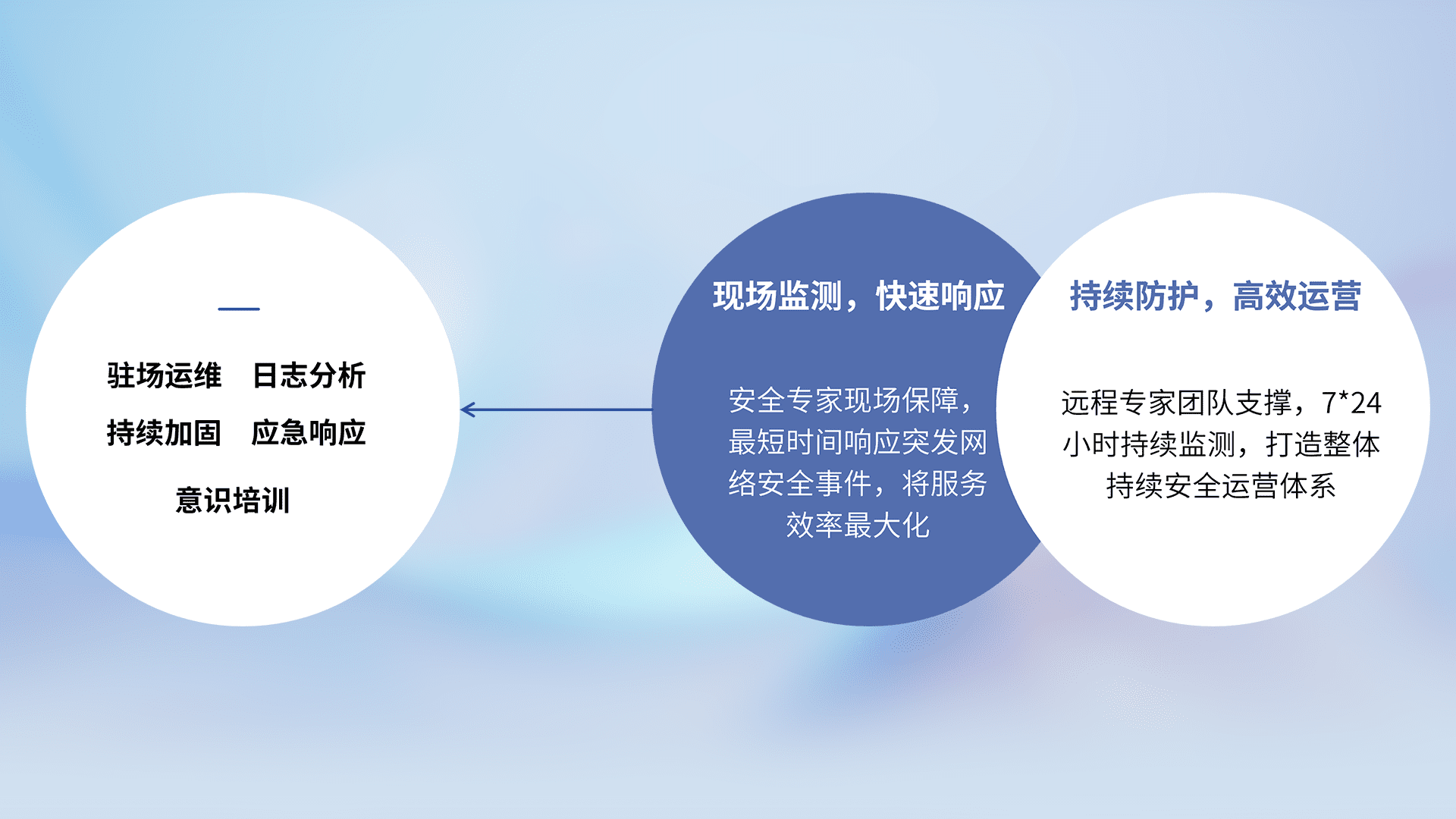 针对客户行业特性,,,提供专属的一站式安全管理服务,,,,帮助客户全面感知网络空间威胁,,,,通过安全专家的线上、、、线下防护支持,,,,实现风险闭环,,,,将安全保障常态化,,,为客户打造常态化安全运维运营服务。。。