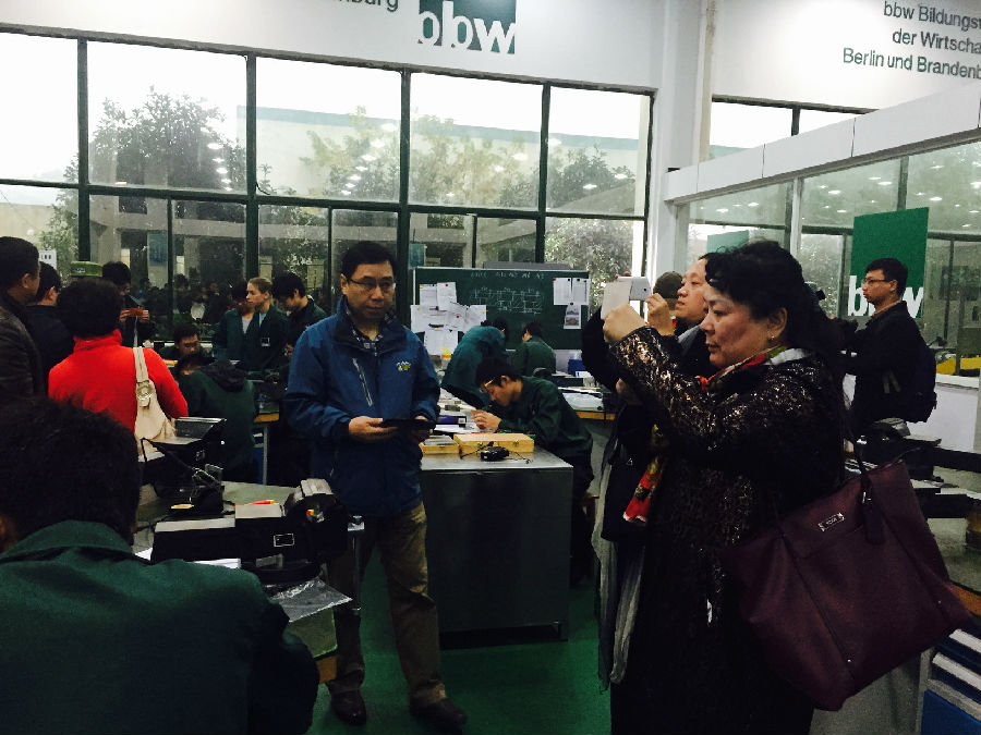 校长团们首先参观了按照德国标准设计的实训车间,,,,学生在德国外教的指导下加工工件场景。。然后大家移步会议厅,,王克副总经理为校长团详细介绍了bbw德国教育集团的企业背景,,bbw苏州的所有项目,,,,各项目的特点等。。。。校长们兴趣高昂,,,,在互动环节提出了非常多的问题,,,,在意犹未尽的情况下,,这次参观也落下了帷幕。。。。